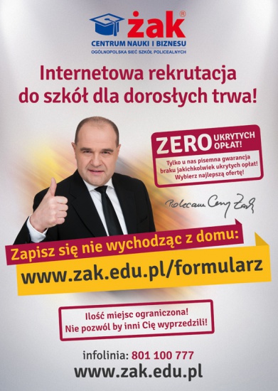 Już od wielu lat aktywnie obserwujemy rynek pracy i szkolimy specjalistów, którzy są poszukiwani przez pracodawców. Jeśli razem z nami chciałbyś rozwinąć swoją karierę zawodową, ten link jest dla Ciebie: http://www.zak.edu.pl/formularz - zapisz się do Żaka! Działajmy wspólnie!