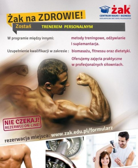Ogromne zainteresowanie w tegorocznej rekrutacji kierunkami związanymi ze zdrowym stylem życia, spowodowało, że zdecydowaliśmy rozpocząć rekrutację na zupełnie nowy kierunek Studium Zawodowego: Trener Personalny. Ten jednoroczny kierunek, jest połączeniem naszych kierunków instruktor fitness oraz dietetyka, ale bardziej ukierunkowany na koncentrację w budowie diety i treningów pod pojedyncze osoby.